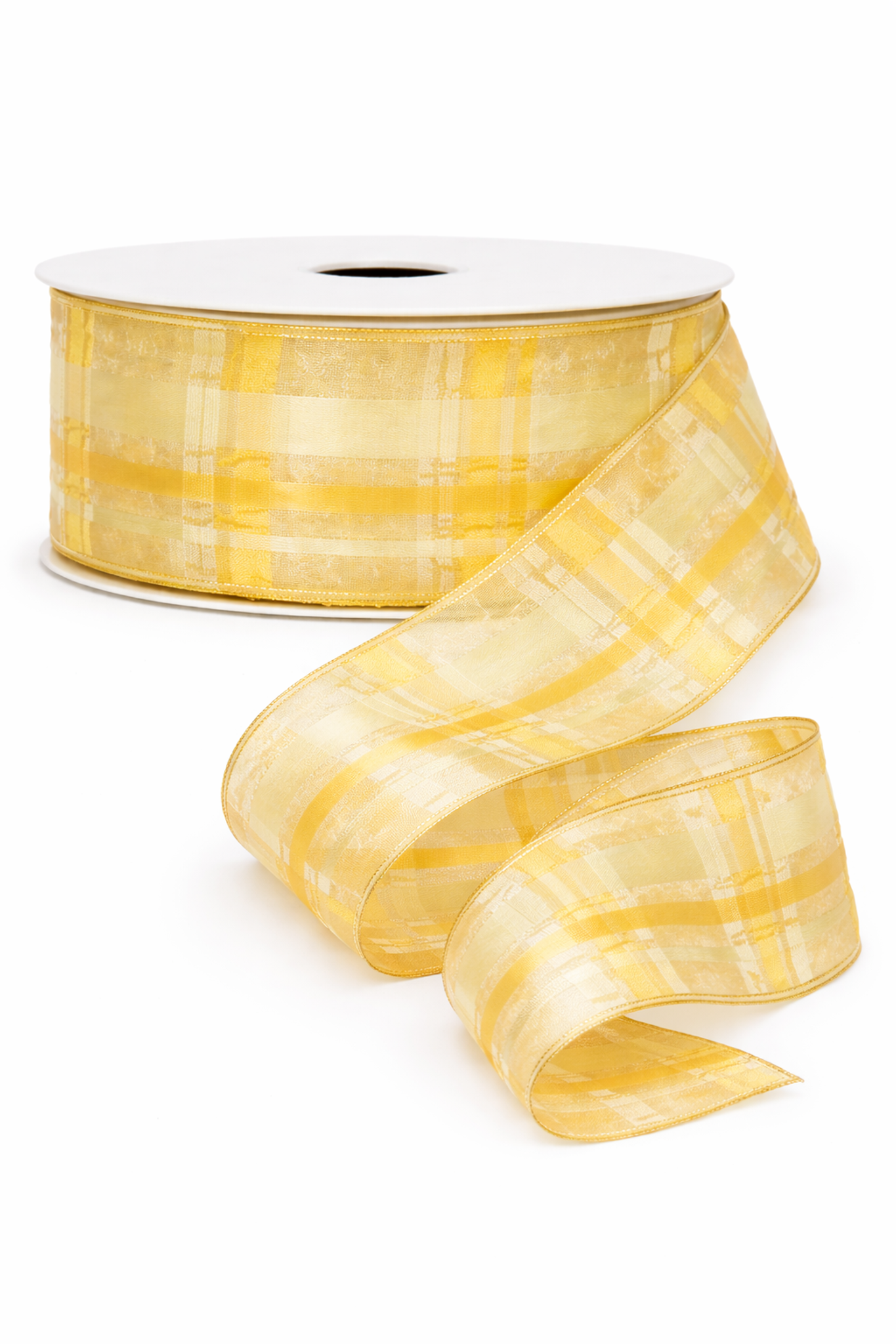 25m Dekoband Schleifenband Band Karo Taft Organza Drahtkante 25mm vanilla gelb
