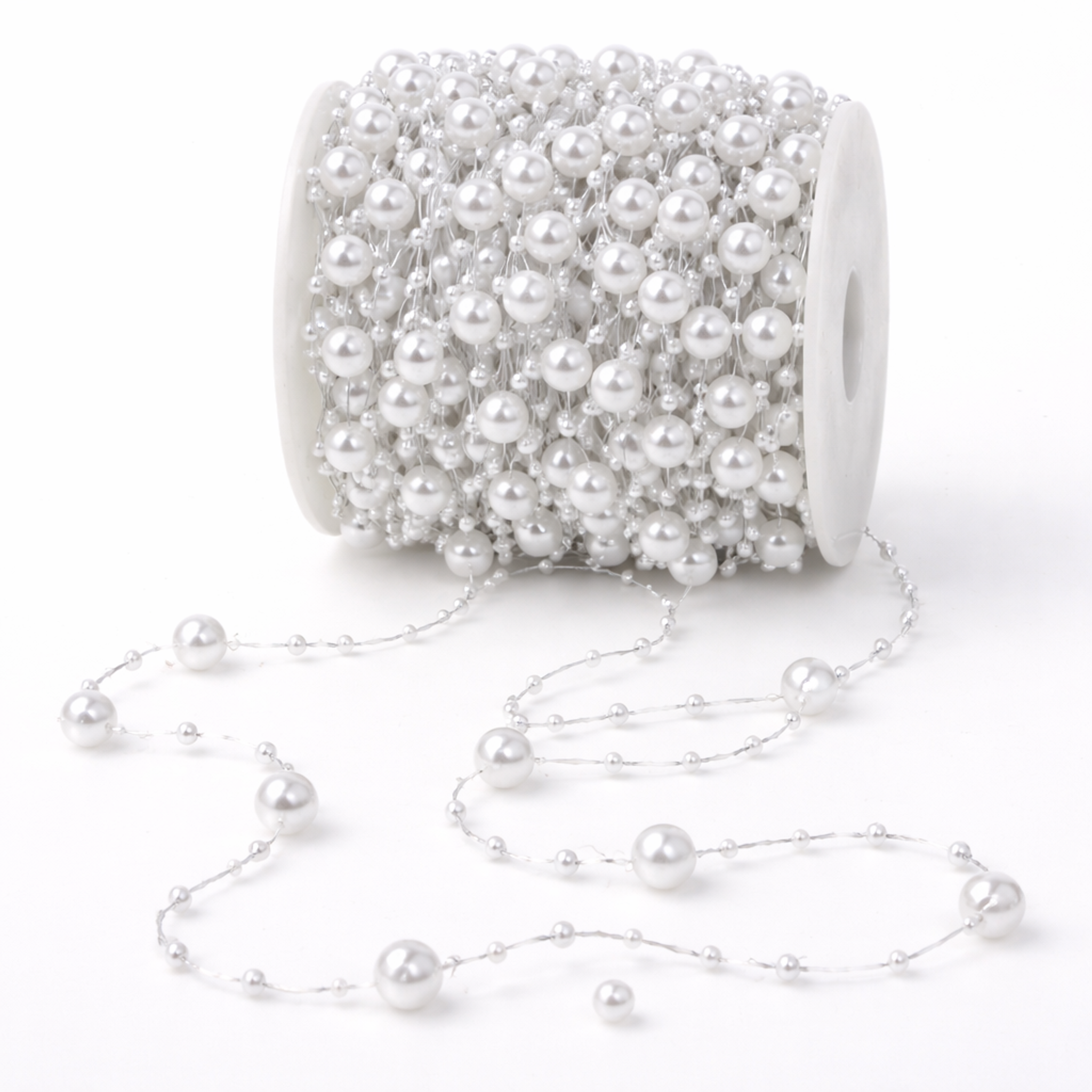 Dekorativer Perlendraht / Perlengirlande auf 30m Rolle – perfekt für festliche Dekorationen, Floristikarbeiten und kreative Bastelprojekte.
