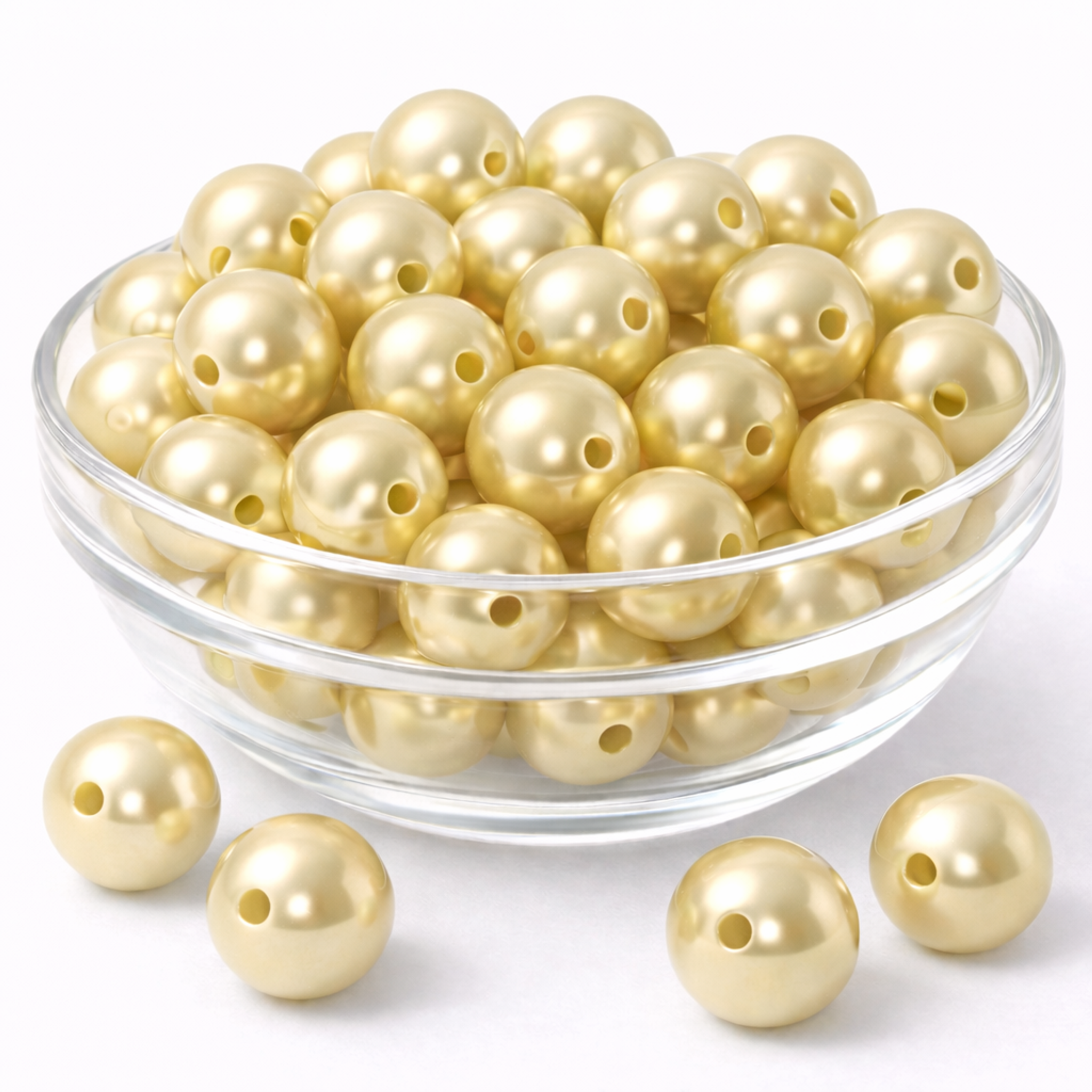 Diese edlen Kunststoff Rundperlen in glänzender Perlmuttoptik eignen sich ideal für zahlreiche Bastel-, Dekorations- und DIY-Projekte. Die Perlen besitzen eine 2mm Bohrung und lassen sich dadurch problemlos auffädeln oder auf Drähte, Bänder und Schnüre aufschieben.