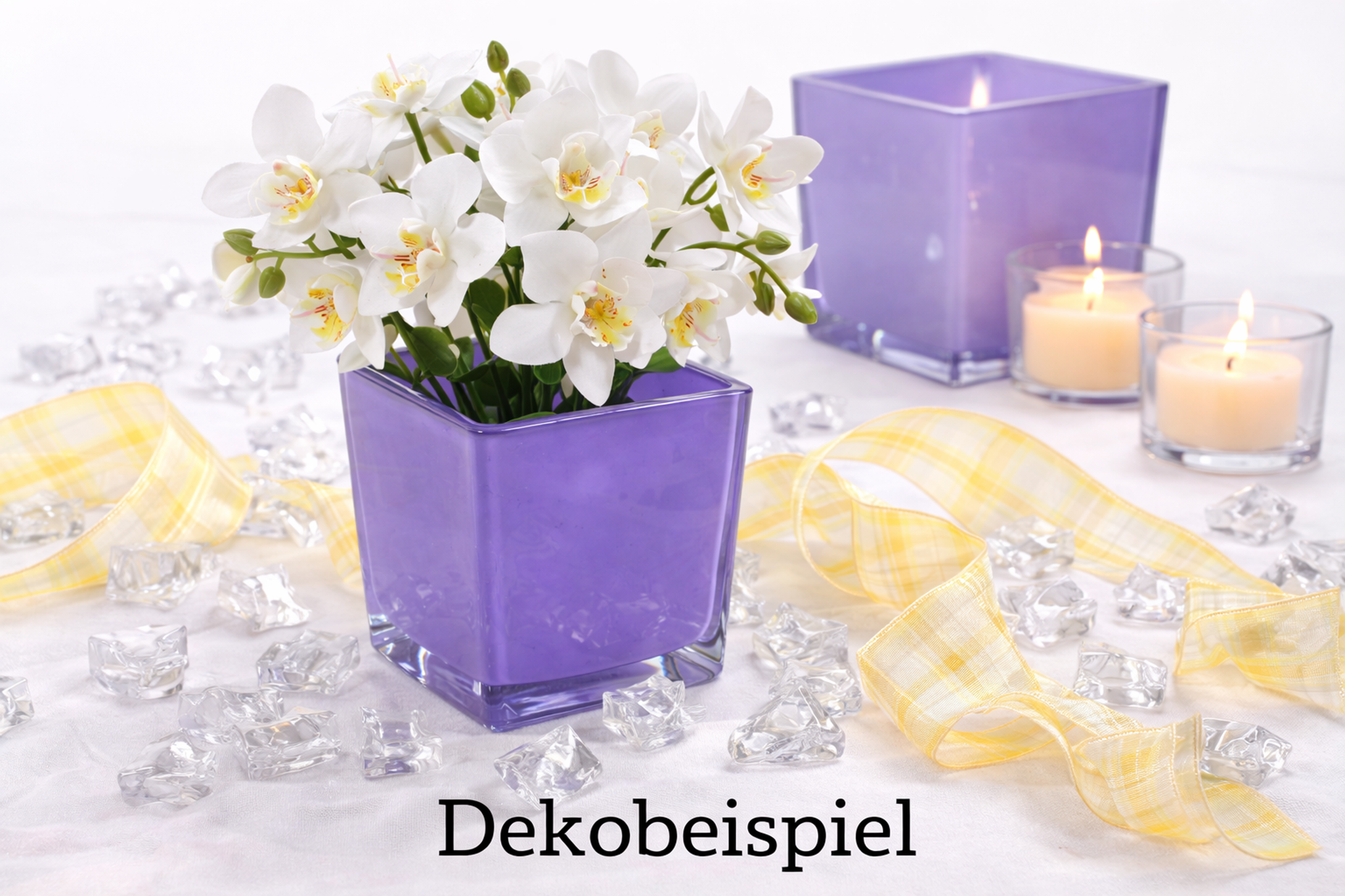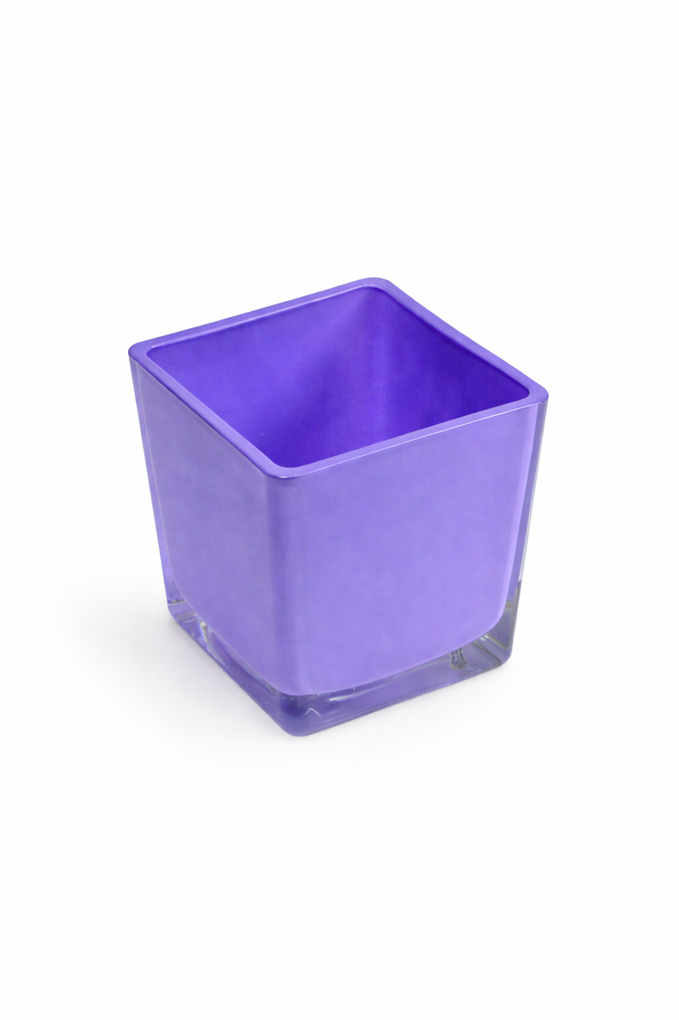 Glaswürfel 6cm lila Vierkant Dekoglas Würfelglas Windlicht Teelichtglas Blumentopf