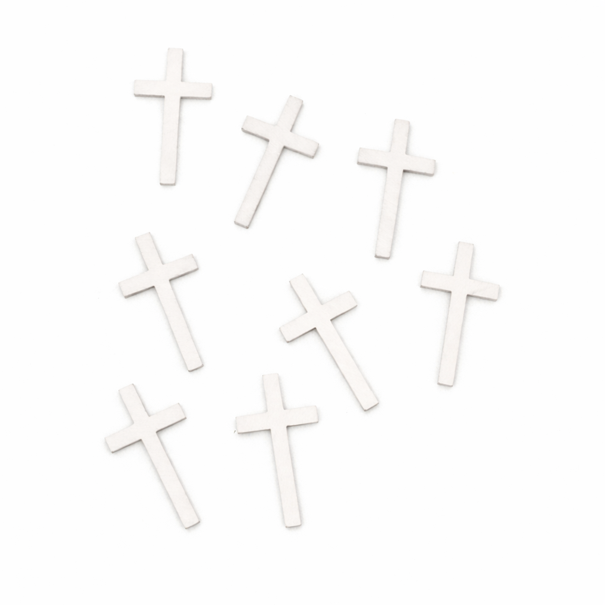 Die Kreuze bestehen aus Holz und sind lackiert. Mit ihrer kompakten Größe eignen sie sich perfekt als Streudekoration auf festlich gedeckten Tafeln oder als kleines Detail in religiösen Gestecken und Arrangements.