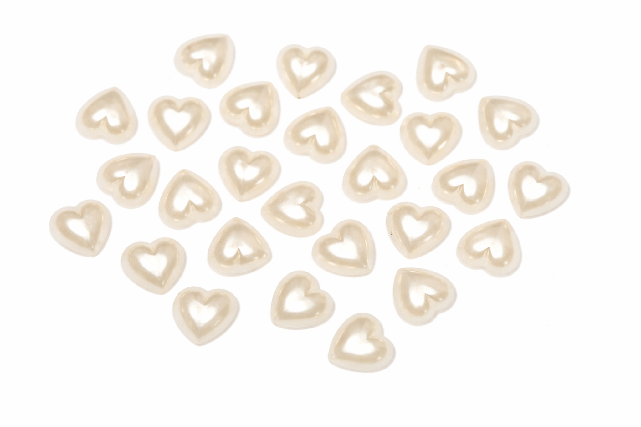 Sehr schöne Streudeko Herzen in Perlmutt creme. Rückseite flach. Größe ca. 12mm.