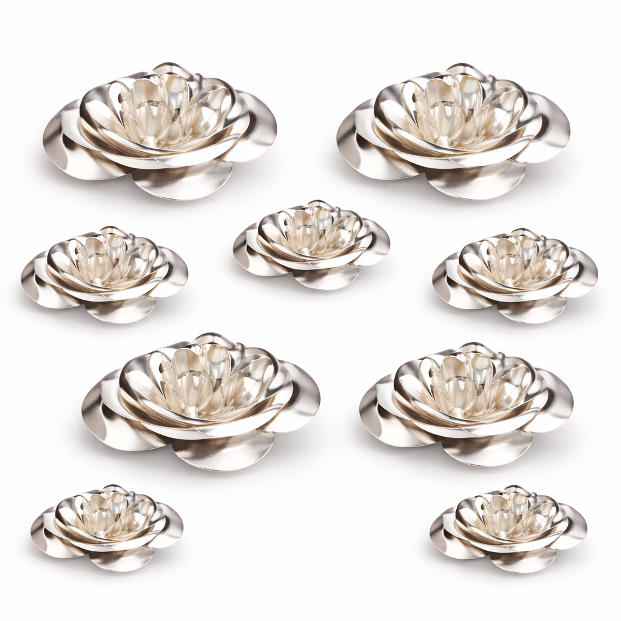 24 Rosen Streudeko 4/6cm 2-fach sortiert silber Metallblüte Hochzeit Tischdeko